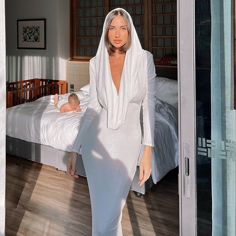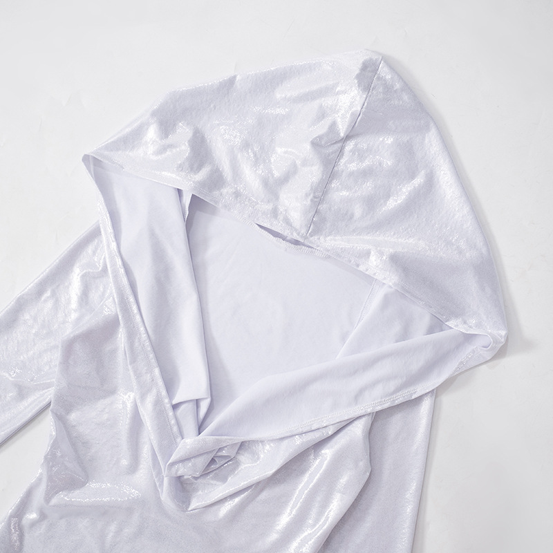 Cross Border Trendy Unique White Hooded Swing Collar High Waist Slim Fit Long Dress